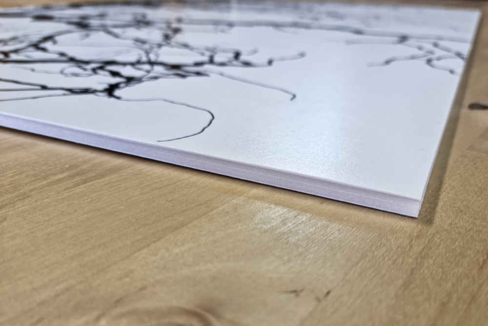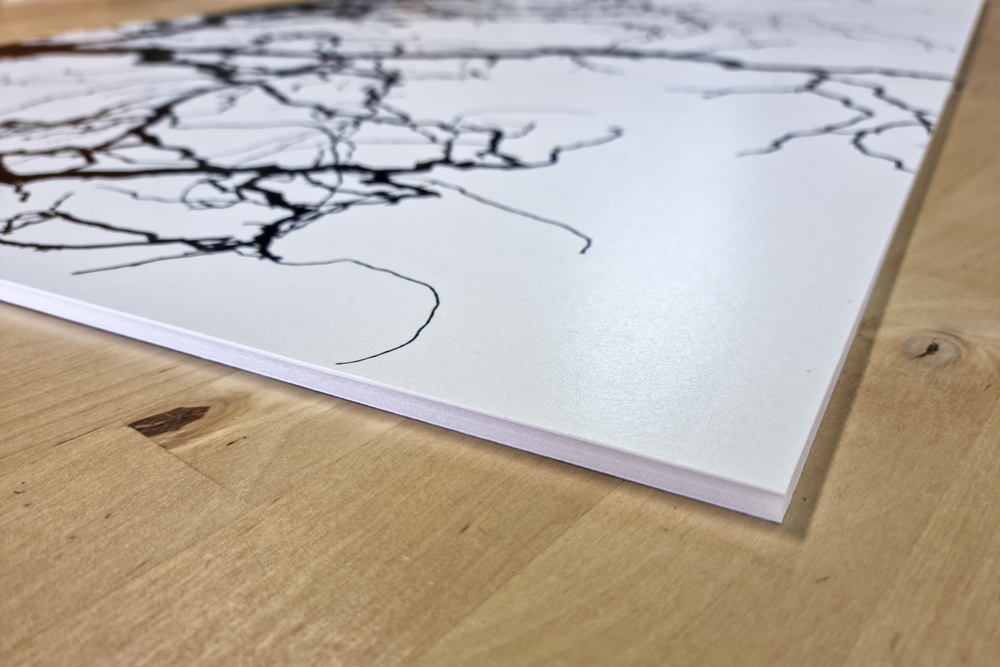 Cartró ploma blanc Premium Quality de 5 mm, reforçat amb làmines d’alumini a totes dues cares. Proporciona una rigidesa excel·lent i una elevada resistència a la curvatura, garantint una qualitat professional òptima. El nucli és de poliestirè d’alta densitat i les superfícies estan recobertes amb paper mat extra blanc amb pH neutre, fet que assegura una planimetria superior i una gran estabilitat dimensional. El material presenta un pes reduït i una elevada resistència a la curvatura.