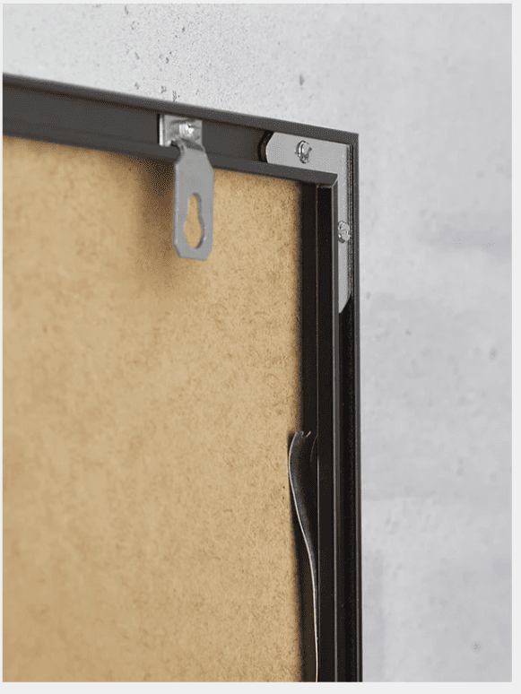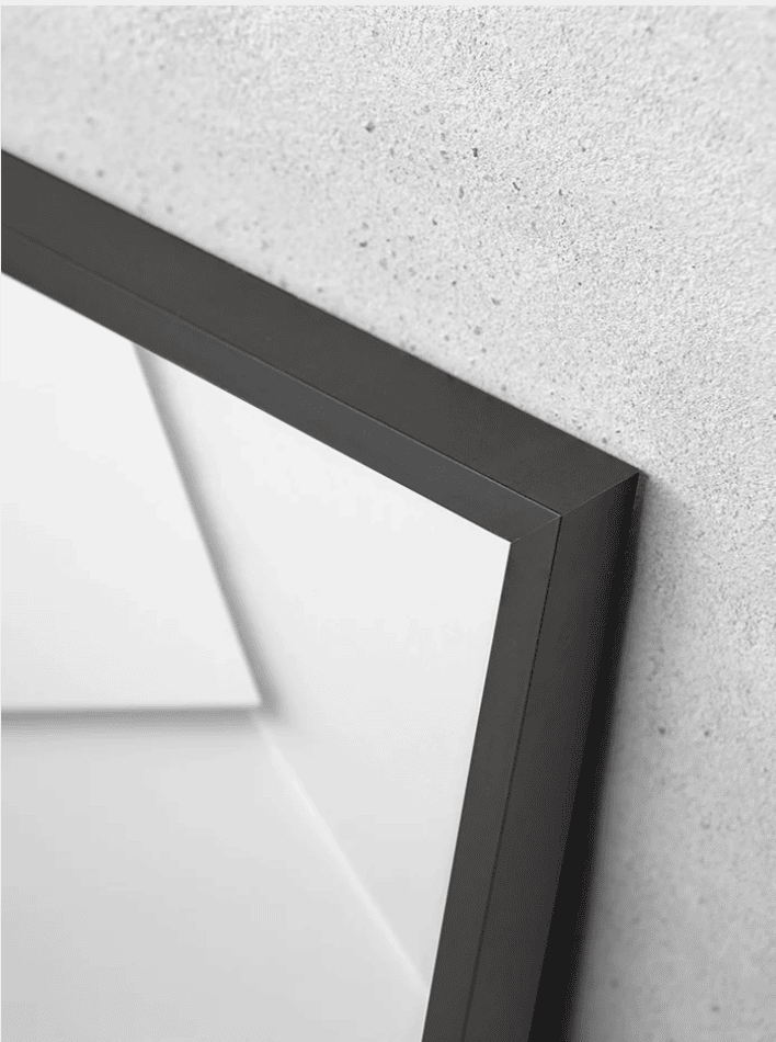 Marc Acer/Alumini amb perfil d’alumini i acabat mat de 0,8 cm d’alçada i 1,7 cm de profunditat.