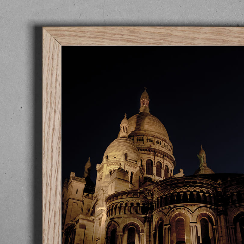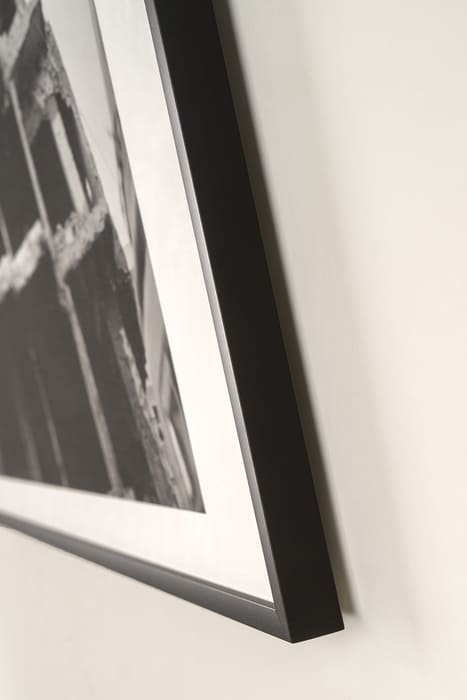 Els marcs de fusta massissa i d’alumini aporten solidesa i elegància, amb sistemes de tancament d’alta qualitat i una execució cuidada fins al detall. L’acabat sobre cartró ploma reforçat amb alumini ofereix una solució lleugera, estable i d’aspecte professional. Les caixes de conservació, fabricades amb materials certificats lliures d’àcid, garanteixen una presentació i una protecció adequada a llarg termini.