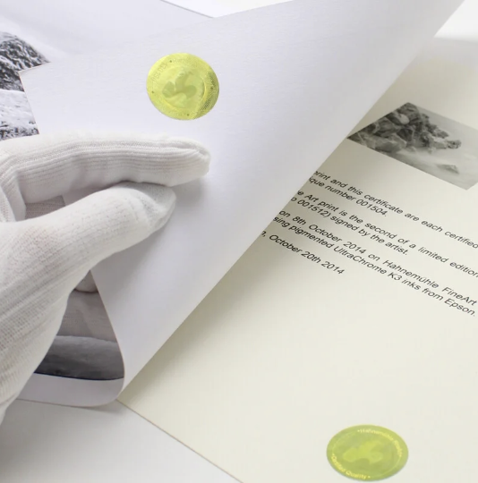 En la impressió Fine Art, destaquem la importància de l’autenticitat mitjançant la Certificació Hologràfica Numerada de Hahnemühle. Aporten confiança, valor i reconeixement a cada obra, assegurant la seva originalitat i qualitat.